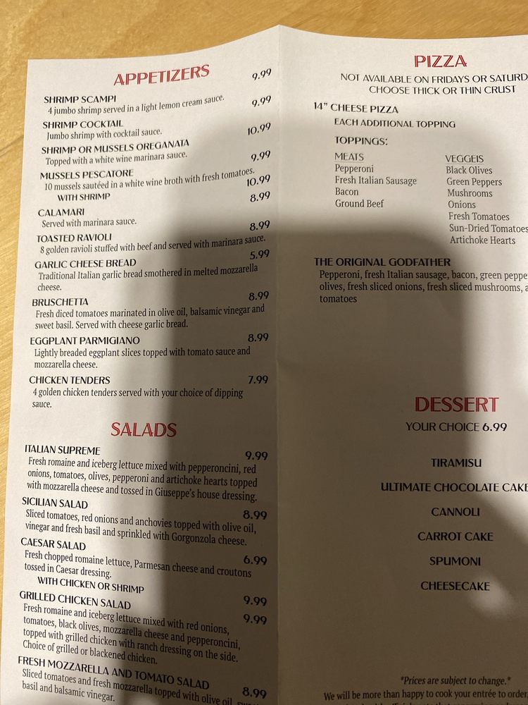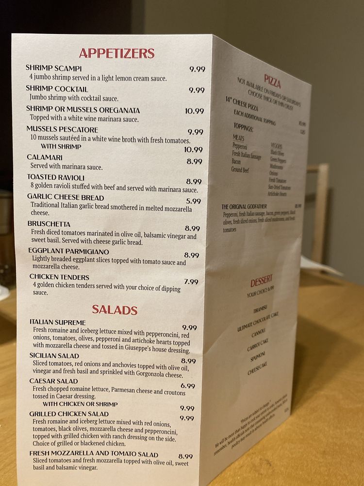 Trattoria Giuseppe, a cozy Italian restaurant located in Imperial, MO, offers a variety of appetizers, salads, and pasta dishes that have received rave reviews from customers. Known for their friendly staff and welcoming atmosphere, Trattoria Giuseppe is a hidden gem that serves up delicious meals cooked with love. Customers praise the owner, Joe, for his incredible flavors and excellent service, making every visit a memorable experience. The menu features classic Italian dishes like Jumbo Shrimp Cocktail, Fettuccini Alfredo, and Lasagna, all prepared with fresh ingredients and served with a touch of old-world charm. Whether you're looking for a casual dinner or a special event catered for, Trattoria Giuseppe is a must-visit destination for authentic Italian cuisine at affordable prices.