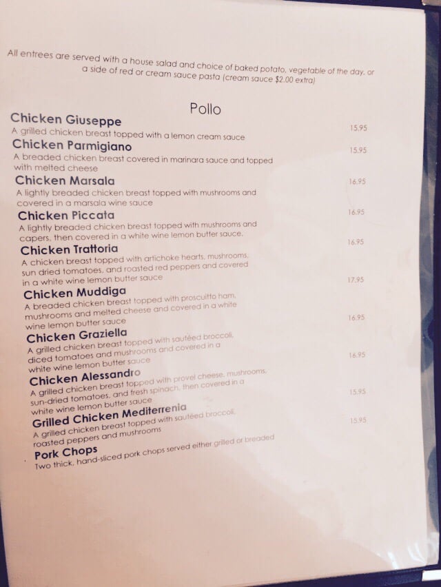 a filet breaded and grilled the way you like it, topped with prosciutto ham, melted cheese and covered with a white wine lemon mushroom sauce