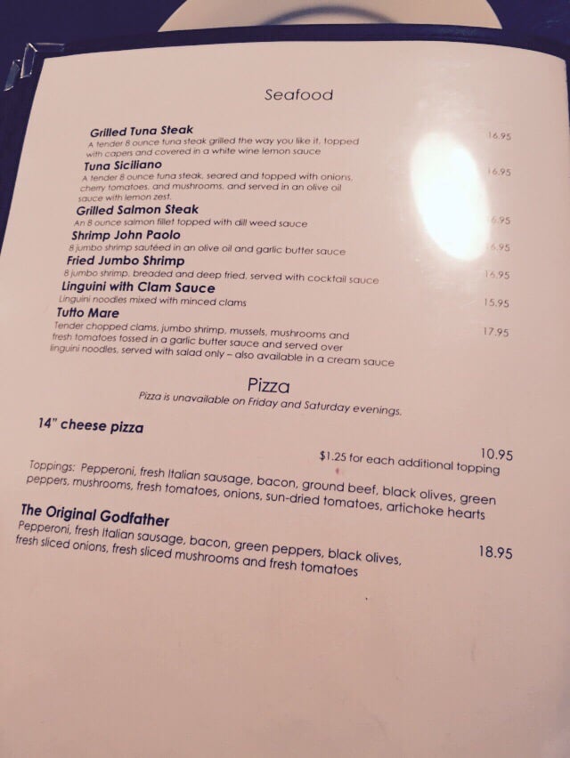 tender chopped clams, jumbo shrimp, mussels, mushrooms and fresh tomatoes tossed in a garlic butter sauce and served over linguini noodles, served with salad only also available in a cream sauce